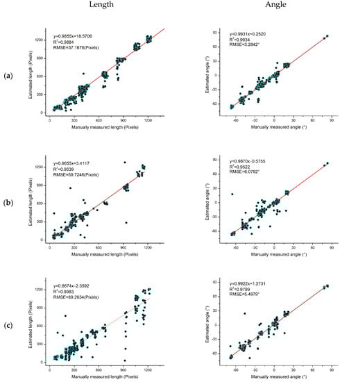 In general, the branch lengths and inclination angles estimated via the method in this paper show a strong linear relationship with the manual measurements. They can be used as an effective means of obtaining information on branch lengths and inclination angles.