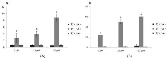 Data were expressed as the means ± SE for the three independent experiments. The collected data were subjected to a one-way analysis of variance (ANOVA) followed by Duncan’s post hoc test. A two-sided p-value of 0.05 was used to declare statistical significance. All analyses were conducted using STATISTICA v. 10 (StatSoft, Inc., Tulsa, OK, USA, 2011).