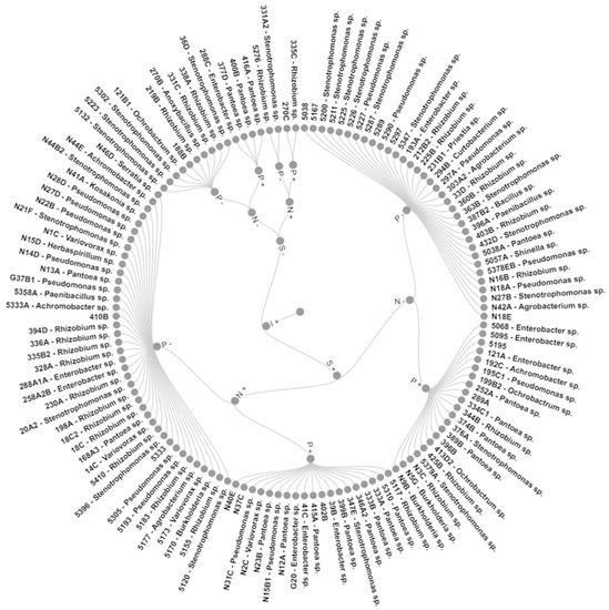Interestingly, the strains with higher N accumulation in the low-water-availability experiment were all identified as Rhizobium, Paenibacillus, and Agrobacterium species, all of which are known as potentially diazotrophic [34,35], which may indicate some level of unmeasured biological nitrogen fixation.