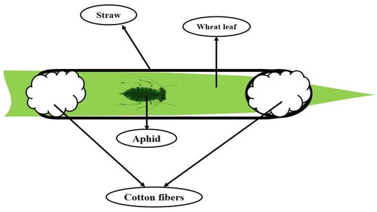 Wheat (Triticum aestivum L.) is one of the most important staple crops directly contributing to global food safety [1]. Numerous insect pests can damage this plant, leading to serious yield losses [2]. The wheat green aphid, Schizaphis graminum (Rondani), is one of the most devastating pests globally. The pest causes substantial economic damage by feeding the wheat plant and transmitting viral pathogens such as barley yellow dwarf virus (BYD) in most crops [3]. Its various biotypes can defeat resistant genes in wheat and sorghum and even detoxify pesticides [4]. Conventional pest control methods significantly contribute to applying insecticides to plants, resulting in significant risks to human and environmental security [5]. Thus, efficient alternative procedures, such as eco-friendly plant-derived agents [6,7], microencapsulation of pesticides, and nanotechnology, have been proposed to solve the issues mentioned above [2,8,9].