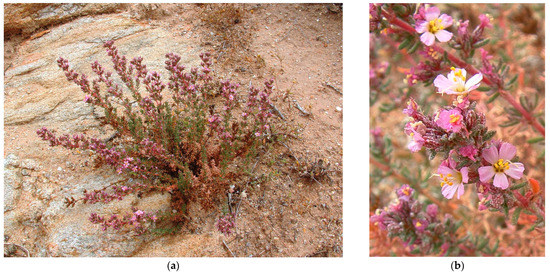 - Obermeyer, A.A. Frankeniaceae. In Flora of Southern Africa; Ross, J.H., Ed.; Botanical Research Institute: Pretoria, South Africa, 1976; Volume 22, pp. 32–36. [Google Scholar]