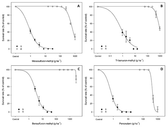 4.2. Dose-Responses to ALS-Inhibiting Herbicides
