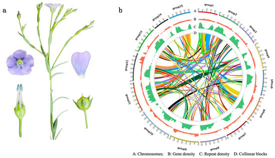 - Sa, R.; Yi, L.; Siqin, B.; An, M.; Bao, H.; Song, X.; Wang, S.; Li, Z.; Zhang, Z.; Hazaisi, H.; et al. Chromosome-Level Genome Assembly and Annotation of the Fiber Flax (Linum usitatissimum) Genome. Front. Genet. 2021, 12, 1665. [Google Scholar] [CrossRef]