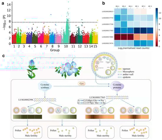 Zhao, X.; Yi, L.; Zuo, Y.; Gao, F.; Cheng, Y.; Zhang, H.; Zhou, Y.; Jia, X.; Su, S.; Zhang, D.; et al. High-Quality Genome Assembly and Genome-Wide Association Study of Male Sterility Provide Resources for Flax Improvement. Plants 2023, 12, 2773. https://doi.org/10.3390/plants12152773