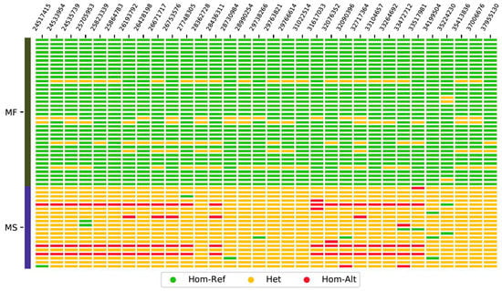 - McKenna, A.; Hanna, M.; Banks, E.; Sivachenko, A.; Cibulskis, K.; Kernytsky, A.; Garimella, K.; Altshuler, D.; Gabriel, S.; Daly, M.; et al. The Genome Analysis Toolkit: A MapReduce Framework for Analyzing next-Generation DNA Sequencing Data. Genome Res. 2010, 20, 1297–1303. [Google Scholar] [CrossRef] [PubMed]