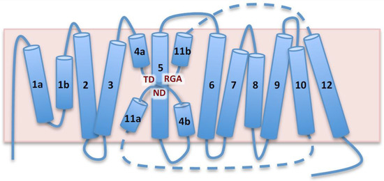 Cation/Proton Antiporters (CPAs) play a major role in regulating the volume and pH of cells and their intracellular organelles. These antiporters mediate the exchange of monovalent cations Na+ and K+ with one or two H+ across the membrane with different stoichiometries. CPAs are divided into two main groups, CPA1 and CPA2, whose members often differ in their ion selectivity and electrogenicity. A key issue with these proteins is their structure–function relationships, since many CPA proteins have intrinsic regulatory features that are intimately connected to structural determinants. High-resolution structures are only available for CPA proteins of prokaryotic origin, and they have served as a template to model the eukaryotic counterparts. All CPA proteins are thought to share a similar transmembrane topology at the active center, known as the Nha-fold [1], in which two short, partly unwound helices in transmembranes 4 and 11 create two partial positive (TM4c and TM11p) and two partial negative (TM4p and TM11c) dipoles that are facing each other [2,3].