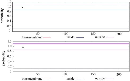Prediction and analysis of transmembrane domains of SceIF4E. SceIF4E-R (a) and SceIF4E-S (b).