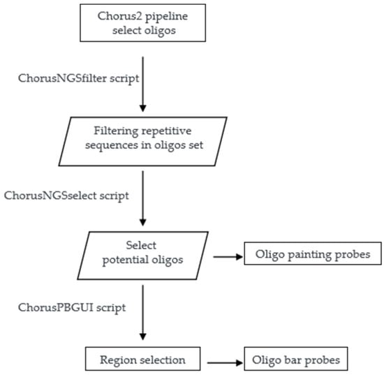 - Zhang, T.; Liu, G.; Zhao, H.; Braz, G.T.; Jiang, J. Chorus2: Design of genome-scale oligonucleotide-based probes for fluorescence in situ hybridization. Plant Biotechnol. J. 2021, 19, 1967–1978. [Google Scholar] [CrossRef] [PubMed]