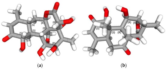 3D structures of (a) eurycomanone and (b) eurycomalactone with labeled chiral centers (S is left configuration and R is right configuration).