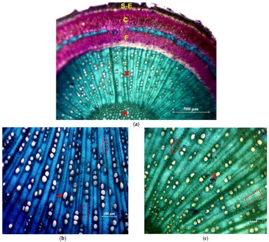 - Sakai, W.S. Simple Method for Differential Staining of Paraffin Embedded Plant Material Using Toluidine Blue O. Stain. Technol. 1973, 48, 247–249. [Google Scholar] [CrossRef]