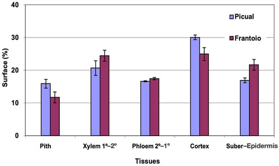 Santos-Rufo A, Molina-Molina M, Alcántara-Vara E, Weiland-Ardáiz C, López-Escudero FJ. Vessel Anatomical Features of ‘Picual’ and ‘Frantoio’, Two Olive Cultivars Different in Resistance against Verticillium Wilt of Olive. Plants. 2023; 12(16):2910. https://doi.org/10.3390/plants12162910