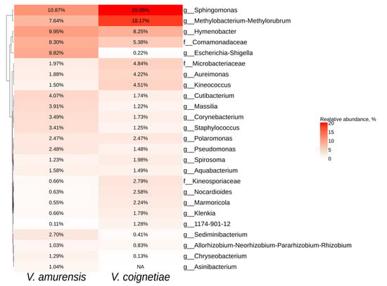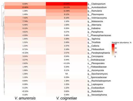 Aleynova, O.A.; Nityagovsky, N.N.; Ananev, A.A.; Suprun, A.R.; Ogneva, Z.V.; Dneprovskaya, A.A.; Beresh, A.A.; Tyunin, A.P.; Dubrovina, A.S.; Kiselev, K.V. The Endophytic Microbiome of Wild Grapevines Vitis amurensis Rupr. and Vitis coignetiae Pulliat Growing in the Russian Far East. Plants 2023, 12, 2952. https://doi.org/10.3390/plants12162952