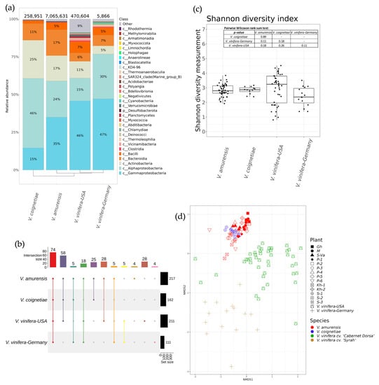 Aleynova OA, Nityagovsky NN, Ananev AA, Suprun AR, Ogneva ZV, Dneprovskaya AA, Beresh AA, Tyunin AP, Dubrovina AS, Kiselev KV. The Endophytic Microbiome of Wild Grapevines Vitis amurensis Rupr. and Vitis coignetiae Pulliat Growing in the Russian Far East. Plants. 2023; 12(16):2952. https://doi.org/10.3390/plants12162952