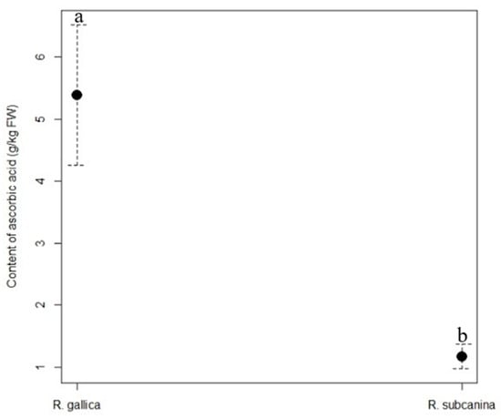 | R. subcanina | 2.09 ± 1.29 a | 0.33 ± 0.06 a | 2.21 ± 0.12 a | 0.27 ± 0.12 a | 23.37 ± 6.85 a | 28.27 mg/100 g |