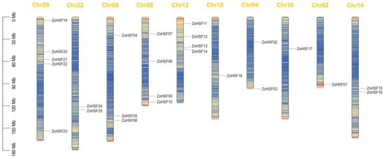 2.2. Chromosomal Distribution and Classification of the ZoHSF Genes