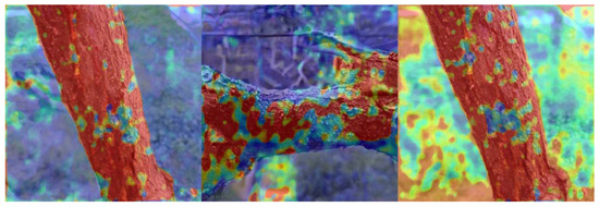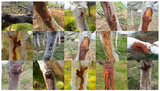 Globally, kiwifruit is a highly valued fruit species due to its unique taste and nutritional benefits, making it a popular choice among consumers [1]. However, the large-scale cultivation of kiwifruit has led to the perennial prevalence of kiwifruit bacterial canker, which is caused by Pseudomonas syringae pv. actinidiae. These pathogenic bacteria can invade the xylem of the kiwifruit trunk and cause local ulcerative decay, affecting the transportation and absorption of nutrients within the trunk and ultimately leading to severe tree mortality, which poses a serious threat to the kiwi industry [2]. Traditionally, the diagnosis of this disease in kiwifruit has primarily relied on visual assessments conducted by experts in the identification and judgment of plant diseases. However, this method lacks real-time monitoring capabilities, making it challenging to promptly detect and respond to disease outbreaks. At the same time, it is difficult for agricultural producers to accurately quantify and assess the extent of disease damage based on the actual condition of the crop.