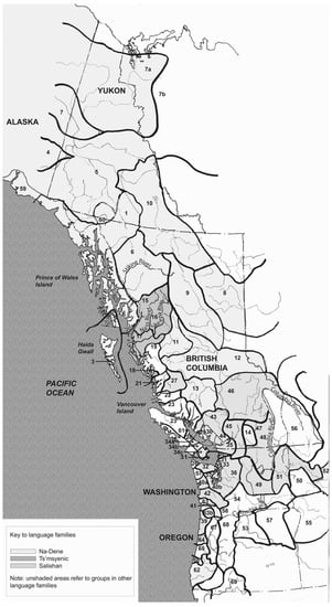 Indigenous languages and cultural areas of northwestern North America; individual groups listed in Appendix B. Map drawn by Dr. Nancy Mackin [2] (vol. 1, p. 11).