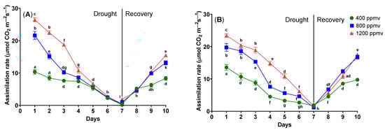 - Abo Gamar, M.I.; Kisiala, A.; Emery, R.J.N.; Yeung, E.C.; Stone, S.L.; Qaderi, M.M. Elevated carbon dioxide decreases the adverse effects of higher temperature and drought stress by mitigating oxidative stress and improving water status in Arabidopsis thaliana. Planta 2019, 250, 1191–1214. [Google Scholar] [CrossRef] [PubMed]