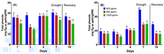 2.3. The Changes in Total Phenolic Content for Plants under Drought Stress