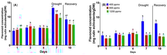 2.4. The Changes in the Flavonoid Content for Plants under Drought Stress