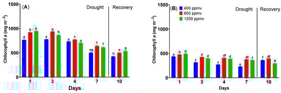 2.5. The Changes in Pigment Concentrations of Cauliflower and Cabbage Plants under Drought Stress