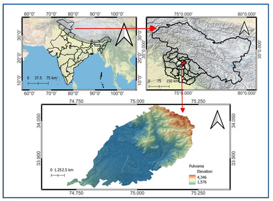 The present investigation was carried out at Saffron Research, SKUAST-K, J&K, located at 74° E longitude, 34° N latitude, and approximately 1650 mts, during 2020–2023 (Figure 7). Climatically, the experimental site is in a temperate zone, characterized by cold winters and hot summers, with average annual precipitation of 812 mm, ranging between 676 to 1193 mm. The experimental material used for the present study comprises six genotypes, including Shalimar Kalazeera-1, which were collected from different altitudes with due consideration given to tuber and seed variability and participatory rural appraisal (PRA) regarding the inherent production potential of the sample. The collected planting material was planted in a randomized block design, and 20 plants were randomly selected for making observations on various seedlings and growth traits.