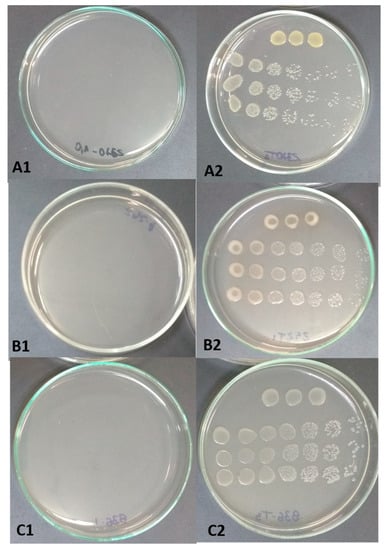 The bacterial strains used in the antagonism bioassays, Ralstonia solanacearum, Xanthomonas perforans, and Pseudomonas syringae pv. tomato were obtained from the Phytopathogenic Bacteria Collection of the Instituto Biológico de São Paulo and grown in nutrient broth medium (NB—5.0 g·L−1 beef peptone; 3.0 g·L−1 beef extract; 5.0 g·L−1 NaCl, pH 7.0) at 30 °C, 180 rpm for 24 h.