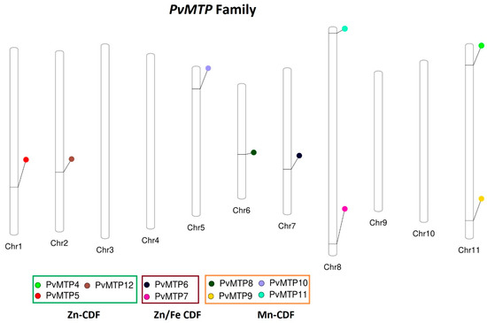 Locations of PvMTP genes in common bean chromosomes.