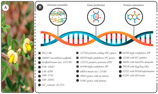 - Marques, A.; Moraes, L.; Dos Santos, M.A.; Costa, I.; Costa, L.; Nunes, T.; Melo, N.; Simon, M.F.; Leitch, A.R.; Almeida, C.; et al. Origin and parental genome characterization of the allotetraploid Stylosanthes scabra Vogel (Papilionoideae, Leguminosae), an important legume pasture crop. Ann. Bot. 2018, 122, 1143–1159. [Google Scholar] [CrossRef]