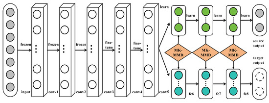 Illustration of the transfer learning mechanism used on AlexNet [21].
