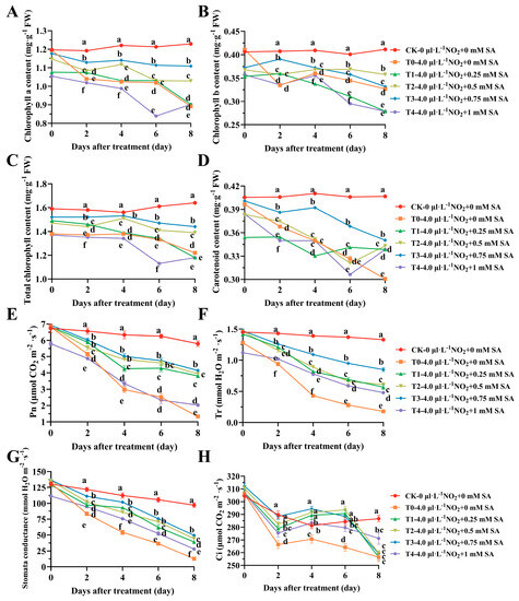 - T3: 4.0 μL·L−1 NO2 + 0.75 mM SA;