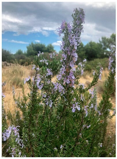 Salvia rosmarinus Spenn., belonging to the Lamiaceae family, is one of the oldest native Mediterranean shrubs. It has a powerful aroma, dark green elongated leaves and whitish, bluish- or bluish-purple flowers [1,2,3]. The name generally used, Rosmarinus officinalis L., is a synonym of the actual name, Salvia rosmarinus Spenn., because recent evidence has shown that Rosmarinus L. are nested in Salvia L. [4].