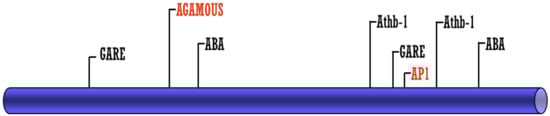 - Lescot, M.; Déhais, P.; Thijs, G.; Marchal, K.; Moreau, Y.; Van de Peer, Y.; Rouzé, P.; Rombauts, S. PlantCARE, a Database of Plant cis-Acting Regulatory Elements and a Portal to Tools for in Silico Analysis of Promoter Sequences. Nucleic Acids Res. 2002, 30, 325–327. [Google Scholar] [CrossRef] [PubMed]