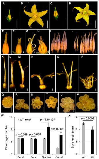 - Zhao, J.; Liu, M.; Jiang, L.; Ding, L.; Yan, S.S.; Zhang, J.; Dong, Z.; Ren, H.; Zhang, X. Cucumber SUPERMAN Has Conserved Function in Stamen and Fruit Development and a Distinct Role in Floral Patterning. PLoS ONE 2014, 9, e86192. [Google Scholar] [CrossRef] [PubMed]
