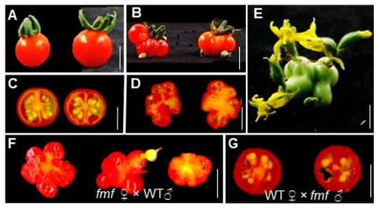 - Chu, Y.; Jang, J.; Huang, Z.; van der Knaap, E. Tomato locule number and fruit size controlled by natural alleles of lc and fas. Plant Direct 2019, 3, e00142. [Google Scholar] [CrossRef]
