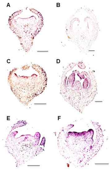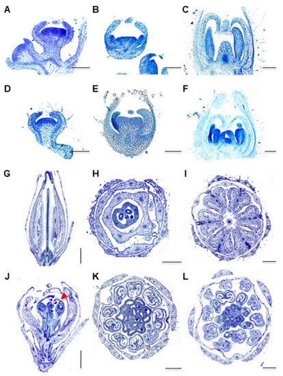 - Sakai, H.; Krizek, B.A.; Jacobsen, S.E.; Meyerowitz, E.M. Regulation of SUP Expression Identifies Multiple Regulators Involved in Arabidopsis Floral Meristem Development. Plant Cell 2000, 12, 1607. [Google Scholar] [CrossRef]