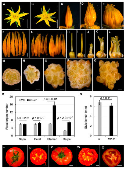 - Li, H.; Qi, M.; Sun, M.; Liu, Y.; Liu, Y.; Xu, T.; Li, Y.; Li, T. Tomato Transcription Factor SlWUS Plays an Important Role in Tomato Flower and Locule Development. Front. Plant Sci. 2017, 8, 457. [Google Scholar] [CrossRef]