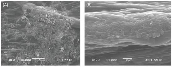 The infection lifecycle of the xanthomonads and X. euvesicatoria in particular includes two stages: epiphytic and endophytic [39]. For the development of the primary inoculum, dissemination, and survival of pathogens, the epiphytic stage is crucial. Most likely, in a natural environment, the bacterial population in the epiphytic stage is the main reservoir and source for the spread of infection. In our experiments, the epiphytic population (a dense bacterial biofilm) of X. euvesicatoria strain 269p formed after artificial infection of pepper plants was observed by SEM (Figure 2). The treatment with specific bacteriophage BsXeu269p/3 led to a visual change in the appearance of the bacterial biofilm on the leaf surface (Figure 2B). We compared the obtained images with similar ones reported in the literature. For example, the bacteriolytic effect of purified phage lytic enzyme P9ly on Shigella dysenteriae and Staphylococcus aureus has been observed by SEM [40]. On the basis of comparison, we tend to define the image obtained from our phage-treated leaf specimens as a potential bacteriolytic effect of BsXeu269p/3 on X. euvesicatoria strain 269p cells.