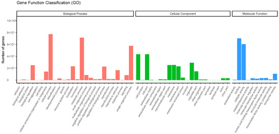 The length of the transcripts and the clustering sequence were calculated. The results are shown in Table S2. Using the Trinity method with default parameters, these high-quality reads were finally assembled into 444,865. All unigenes were longer than 200 bp, and the N50 of the final assembled transcripts was about 1374–1512 bp. These indicators reflected the high-quality data obtained by sequencing, ensuring reliability in subsequent analyses.