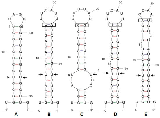 - Zuker, M. Mfold web server for nucleic acid folding and hybridization prediction. Nucleic Acids Res. 2003, 31, 3406–3415. [Google Scholar] [CrossRef]