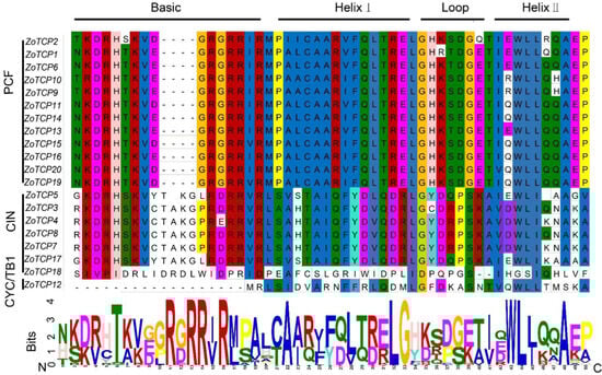 The multiple sequence alignment of ZoTCP protein was divided into an alkaline region basic and Helix I–Loop–Helix II.