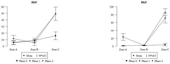 | Interactions | Zone B: Phase 1 | −130.782 | −239.597 | −21.966 | p = 0.019 * |