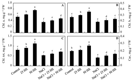 2.2. Effect of Exogenous HS on Photosynthetic Pigments