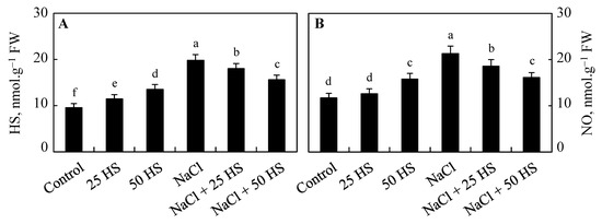 2.7. Effect of HS and NaCl on Nitrate Reductase Activity