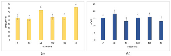 Due to the lower organic matter content and the lack of surface litter cover, the water storage capacity of these soils was significantly limited [], therefore we measured the lowest average moisture content among the treatments in the second measurement period (2010–2012). We experienced this even in the case of the No Input treatment, which had the second-highest soil moisture in the first measurement period (after the establishment of the plots). Despite the absence of transpiration in this treatment, the two opposite effects mentioned were more significant.