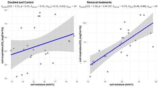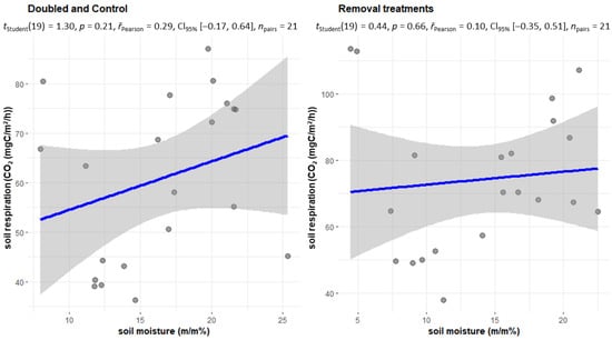 Statistical analyses were performed using ANOVA and Tukey’s HSD test (comparing both moisture values of treatments and soil respiration values). The correlation between moisture and CO2 emissions was tested by analysis of variance.