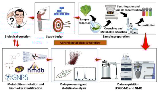 As such, the biochemical rationale of signal transduction and the roles of metabolic features involved remain elusive; however, the metabolite-guided abiotic stress response in the plant has gained much attention in recent in vivo and in vitro studies using metabolomics and transcriptomic technologies suggest stabilizing effects of metabolites in stress response [62,63,64]. Many such studies have applied omics sciences (genomics, transcriptomics, proteomics, and metabolomics) in integrated and independent approaches to unravel the metabolism of plants under specified abiotic stress conditions. Additionally, improved bio- and cheminformatics tools have been used to understand complex processes associated with elucidating spatial and temporal production of the bioactive compounds involved in abiotic stress perception, signalling, and response [64]. This section of the review thus focuses on the potential applications of metabolomics and the still relevant old, as well as the exciting new, related bio-/cheminformatic tools (Figure 2) to elucidate plant response to abiotic stress, particularly in HM toxicity and osmotic stress conditions. Firstly, the current advances in metabolomics technologies will be briefly discussed, followed by insights into the application of metabolomics in plant science.