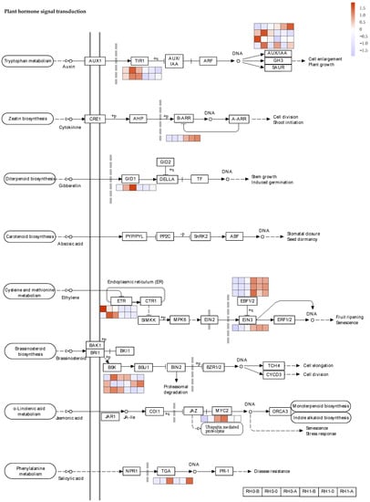 2.4. Identification of DEGs of Hormone Signals Involved in Root Hair Growth and Development
