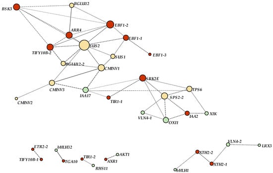 2.6. Interaction Analysis of Sucrose and Hormones Metabolism Signals Involved in Root Hair Development