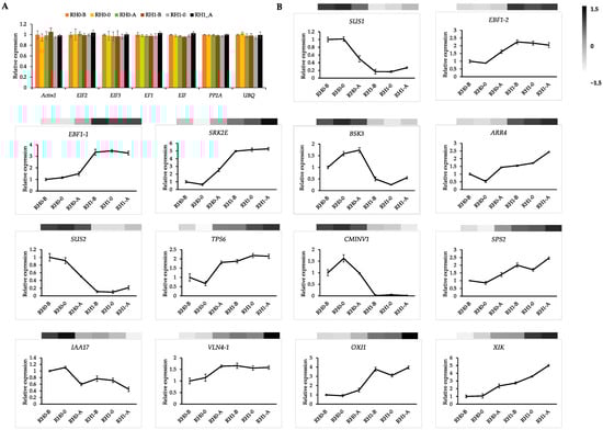 2.7. qPCR Validation for Reference Genes and DEGs of Sucrose and Hormones Signals Involved in Root Hair
